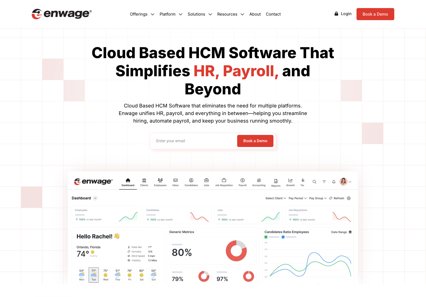 Enwage is a cloud-based Human Capital Management (HCM) platform that centralizes HR, payroll, and workforce operations into a single system. It streamlines talent acquisition (applicant tracking, onboarding, interview scheduling), HR management, time & attendance, PTO tracking, performance reviews, benefits administration, and payroll automation — all with integrated analytics, workflow automation, and seamless integrations with tools like QuickBooks, Stripe, and more. As one unified solution, Enwage helps businesses scale without juggling multiple disparate HR systems.